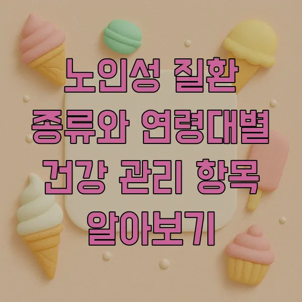 그래서 오늘은 노인성 질환 종류 와 연령대별 건강 관리 항목 에 대해 자세히 알아보고, 건강한 노후를 위한 실질적인 정보들을 공유하고자 합니다. 함께 건강한 삶을 설계해 나가도록 해요!