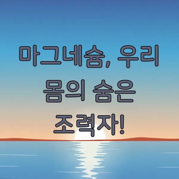 불현듯 눈 주변이 파르르 떨리거나, 오랜만에 운동 좀 했다가 근육이 쫙 뭉쳐서 고생한 적, 혹시 있으신가요? 저도 그럴 때가 가끔 있더라구요. 알아보니 이게 바로 우리 몸속 마그네슘이 부족하다는 신호일 수 있다는 거예요! 현대인들은 스트레스도 많이 받고, 식습관도 불규칙해서 영양소가 부족하기 쉬운데요. 오늘은 '천연 수면제'라고도 불리는 마그네슘에 대해 속 시원하게 파헤쳐 보는 시간을 가져볼까 해요. 마그네슘이 우리 몸에 얼마나 중요한지, 부족하면 어떤 증상이 나타나는지, 또 부작용은 없는지 꼼꼼하게 알려드릴게요!