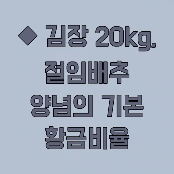 제가 올해도 저희 가족이 좋아하는 맛있는 김장을 위해 20kg 절임배추에 딱 맞는 양념 황금비율을 준비해봤어요. 물론 집집마다 입맛이 조금씩 다르니, 이건 어디까지나 기본 틀이라고 생각해주시면 좋아요. 이걸 바탕으로 조금씩 조절해가면서 우리 집만의 김치 맛을 찾아가는 재미도 쏠쏠하답니다! 성공적인 김장을 위해 이 비율을 꼭 기억해주세요.