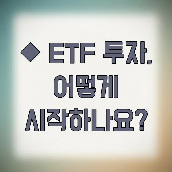 ◆ ETF 투자, 어떻게 시작하나요? 🚀
